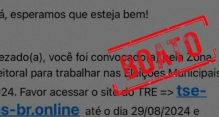 Justiça Eleitoral alerta para fake news nas Eleições 2024 - Foto: Divulgação A Justiça Eleitoral tem emitido alertas nos últimos dias sobre e-mails falsos com convocações de mesários e atualização de dados. As comunicações afirmam que o eleitor foi chamado para trabalhar nas eleições como mesário.