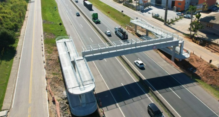 Também há passarelas em Laguna, Capivari de Baixo e Imbituba - Foto: Divulgação A CCR ViaCosteira realizou no final de junho o içamento da viga de travessia da passarela de pedestres no quilômetro 342, próxima à comunidade de São Cristóvão, em Tubarão.