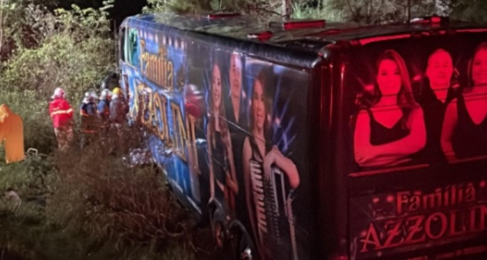 O veículo transportava a banda da Família Azzolini, de Francisco Beltrão, no Paraná, e saiu da pista após colidir contra um Ecosport, na BR-280, em Clevelândia, no estado paranaense.