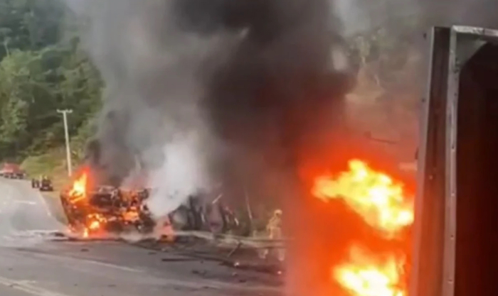 De acordo com as informações, uma carreta, em sentido contrário, invadiu a pista e colidiu com o micro-ônibus.