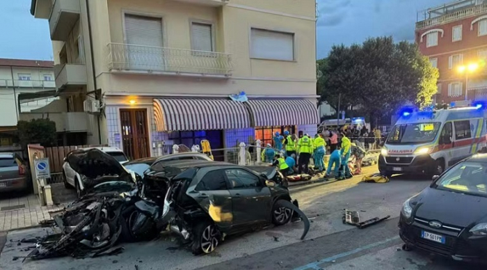 Mulher foi presa no local e será submetida a um teste toxicológico - Foto:Reprodução Uma mulher brasileira atropelou oito pessoas na cidade de Lido di Camaiore, na Itália, ao atravessar dois sinais vermelhos em alta velocidade na última quarta-feira, 18 de setembro.