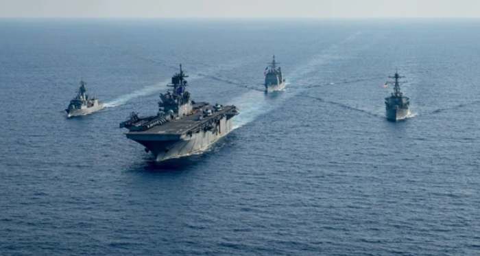 As embarcações estão transportando 4.500 membros do serviço, incluindo 2.200 fuzileiros navais, disseram as fontes.