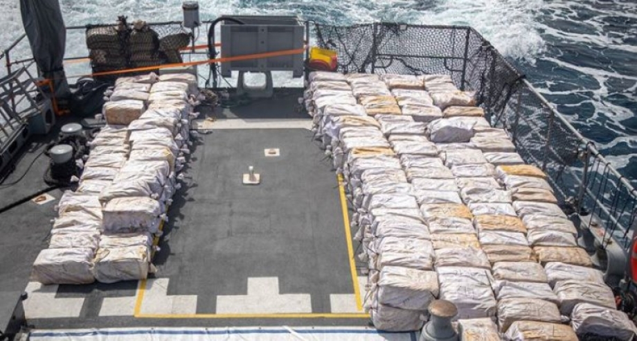 Foto: Marinha da França A Polícia Federal participou na última semana de operação de cooperação policial internacional com a Marinha da França, a Interpol e o Centro de Análise e Operações Marítimas – Narcóticos, da União Europeia, que permitiu a apreensão de mais de 4,7 toneladas de cocaína dentro de um cargueiro de bandeira de São Cristóvão e Névis na costa oeste da África.