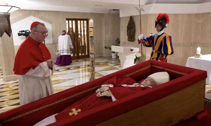 Na terça-feira, o Vaticano divulgou as primeiras imagens do papa Francisco no caixão, na Casa Santa Marta, onde viveu o pontífice.