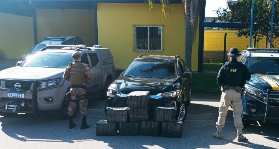 A droga estava em uma GM/Tracker placas de Araranguá. O motorista disse que pegou a mercadoria no Paraná e a entregaria na região da capital.