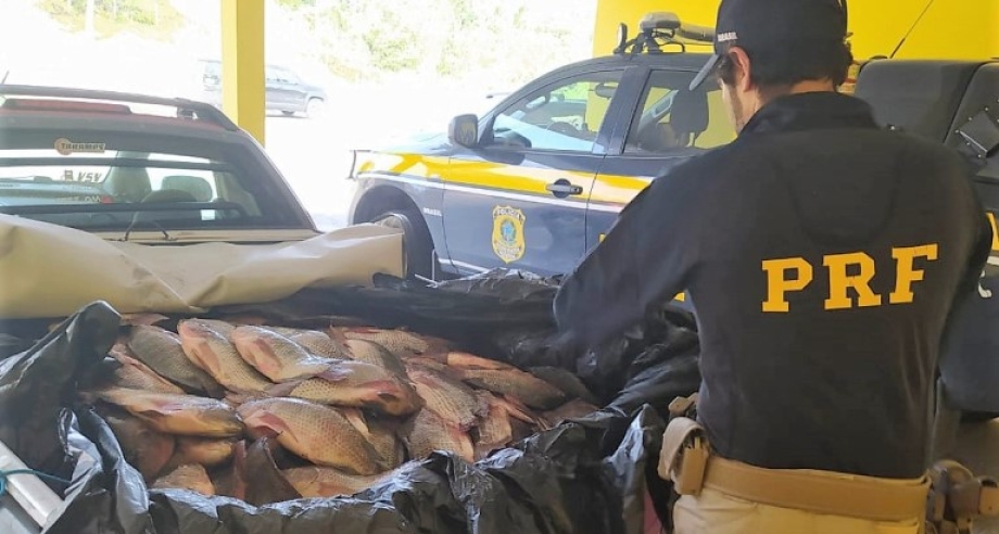 Foto: Divulgação Policiais rodoviários federais flagraram na manha desta terça-feira, 07 de março, na BR-101 em Barra Velha, uma carga de aproximadamente 600 quilos de peixes da espécie Tilápia do Nilo sendo transportada sem nenhum tipo de refrigeração.