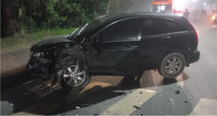 Os ocupantes do outro veículo fugiram do local - Foto: Divulgação Uma colisão frontal deixou um motorista ferido na noite de sábado, 08 de junho, em Tubarão. O acidente foi registrado no Bairro Revoredo. Um Fiat Uno e Honda CR-V foram envolvidos no acidente por por volta das 21h30, na Avenida Getúlio Vargas.