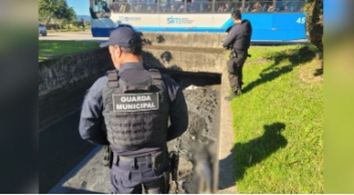 A imagem foi registrada pela Guarda Municipal de Florianópolis, que acompanha os trabalhos do IGP (Instituto Geral de Perícias) e da Delegacia de Homicídios.