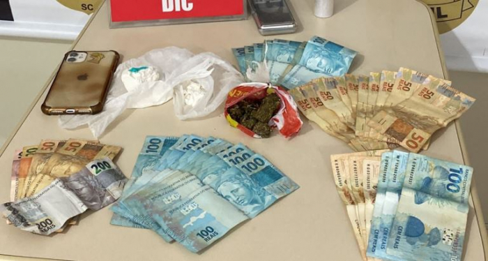 No final da tarde de ontem, uma equipe da DIC de Tubarão se deslocou à cidade de Gravatal e deu cumprimento ao mandado e no interior da residência apreenderam cerca de 49g de cocaína, 16g de maconha, uma balança de precisão, mais de R$ 3 mil em dinheiro e aparelhos de celular.