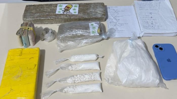 Com base nas informações levantadas, a polícia também foi até a residência de uma mulher de 60 anos, que possui vínculo familiar com o suspeito. No imóvel, em uma área de serviço, foram localizados aproximadamente 1,785 kg de cocaína e 1,640 kg de maconha.