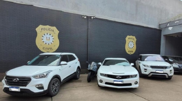Carros apreendidos nesta quinta, 22 - Foto: Polícia Civil RS, Divulgação Uma operação policial contra o tráfico e transporte de drogas bloqueou R$ 27 milhões em bens dos suspeitos de participarem do esquema. A ação também cumpriu 32 mandados nesta quinta-feira, 22 de agosto, em cidades de Santa Catarina e Rio Grande do Sul.