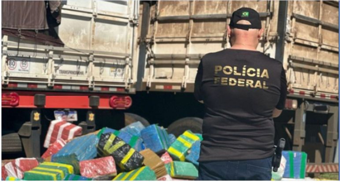 As investigações continuarão para identificar outros possíveis envolvidos no crime - Foto: Divulgação A Polícia Federal apreendeu um caminhão bitrem carregado de maconha na BR-101, próximo ao pedágio de Porto Belo.