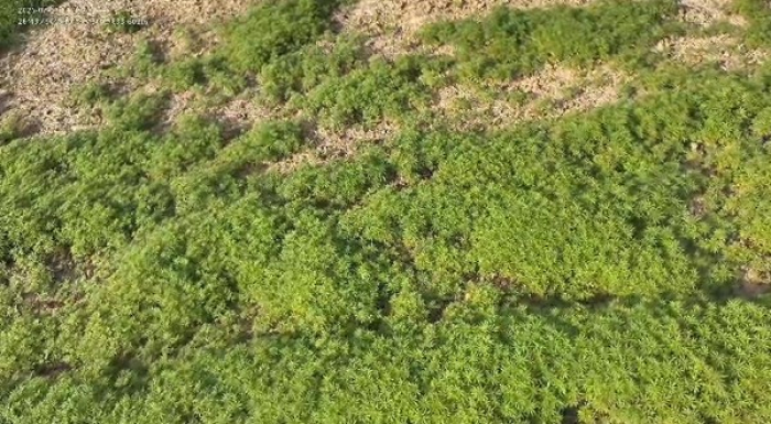 Após a descoberta e a prisão, a área foi isolada e um trator agrícola foi utilizado para destruir completamente todos os pés de maconha.