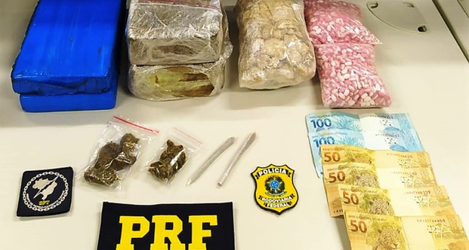 A mercadoria estava na mochila de um dos passageiro de um Hyundai/HB20, placas de Tubarão. Os policiais encontraram 2.131 comprimidos de ecstasy, 2,13 quilos de cocaína, 2,12 quilos de maconha, um quilo de crack, 10 gramas de skunk e ainda R$ 400 em dinheiro.