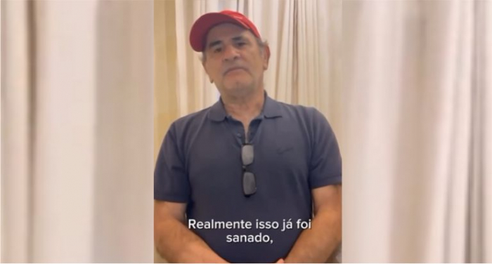 Na gravação, ele tranquiliza os eleitores ao garantir que ele é candidato a prefeito, apesar de a oposição dizer que ele não teria condições em decorrência de ações na Justiça.