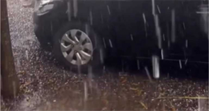 As primeiras informações mostram granizos de pequeno porte na área central, mas há ainda vídeos de moradores da parte mais interiorana que mostram pedras de gelo um pouco maiores. A previsão de chuva se estende para o período desta tarde. O governo municipal pede atenção.