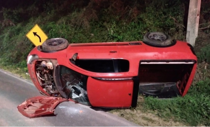 Conforme os bombeiros, um veículo Volkswagen Saveiro estava tombado a cerca de 200 metros do primeiro automóvel.