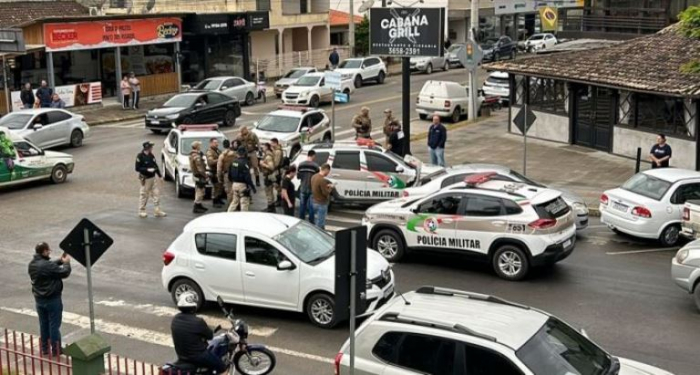 O carro, com placas de São Ludgero (SC), disparou em alta velocidade após ordem de parada. Por 15 minutos, trafegou de forma perigosa pelas ruas da cidade e furou um bloqueio viário, até que bateu em um veículo estacionado.