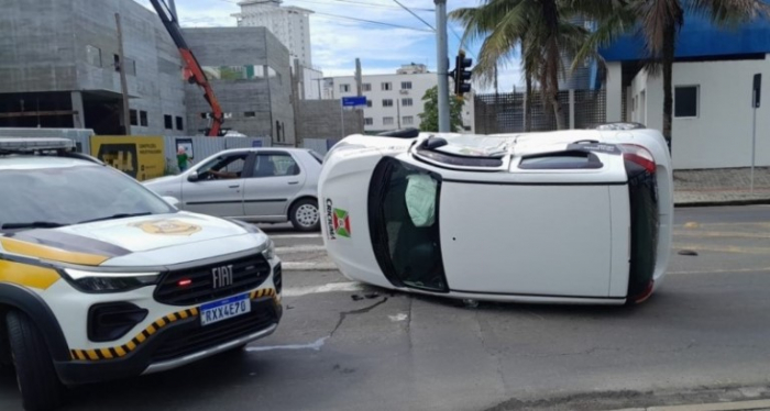 O acidente foi registrado no Centro da cidade - Foto: Divulgação Um acidente em um cruzamento de Criciúma fez um carro da prefeitura tombar na manhã terça-feira, 27 de fevereiro. A colisão foi registrada entre as Araranguá e Eugênio de Bona Castelan, no Centro.