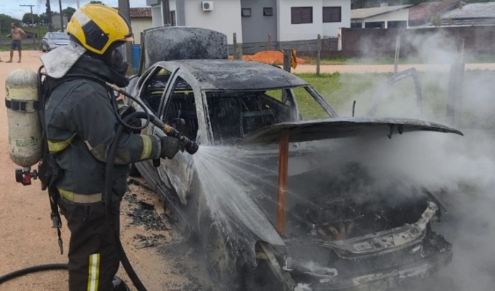 Quando o Corpo de Bombeiros chegou no local, no Bairro Barracão, o veículo já estava destruído.