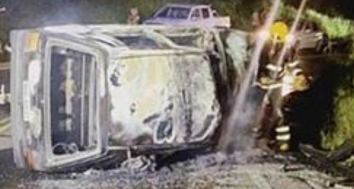O acidente ocorreu na SC-390 - Foto: Reprodução No último domingo, 14 de janeiro, um carro capotou e pegou fogo após colidir contra uma motocicleta na SC-390, em Lauro Müller. o motociclista ficou ferido.
