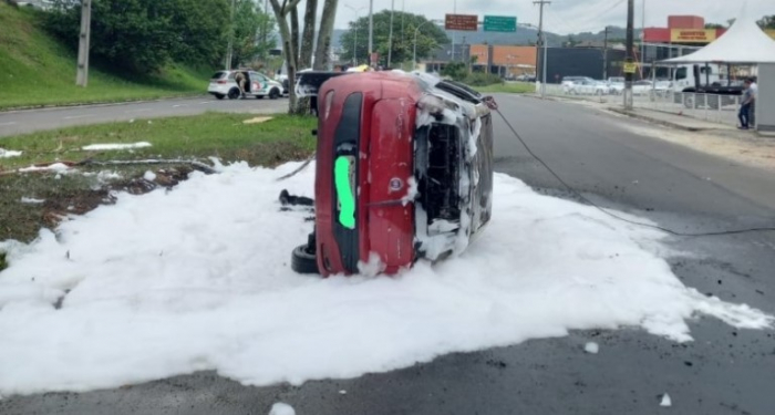 Quando a guarnição chegou no local, o carro estava tomado pelas chamas. Foi necessário lateralizar o veículo sobre a via para auxiliar na extinção das chamas, o que foi feito com uso de quatro mil litros de água e quatro litros de líquido gerador de espuma (LGE). Após a ação dos bombeiros, o local ficou aos cuidados da Polícia Militar (PM).