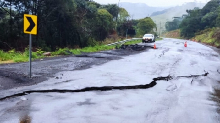 Trabalhos de recuperação devem ser iniciados nesta manhã - Foto: Divulgação Rachaduras na rodovia SC-114, entre São Joaquim e Painel, na Serra Catarinense em decorrência das chuva que atingiram a região na madrugada desta quinta-feira, 03 de outubro.