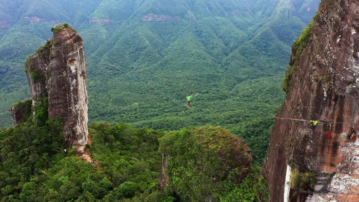 O feito foi realizado nos dias 20, 21 e 22 de fevereiro e envolveu mais 10 profissionais entre equipe do highline, escaladores e equipe de produção.