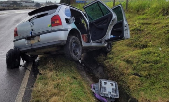 A saída de pista de um veículo VW Gol foi registrada na BR-101, no Bairro Esplanada.