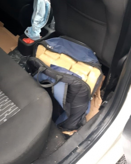 Os PRFs deram ordem de parada a um Ford/Ka de Imbé/RS, que não obedeceu e fugiu por cerca de três quilômetros até ser abordado. No assoalho do banco traseiro, havia uma mochila contendo tabletes da droga, pesando 14,9 quilos.