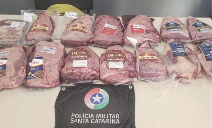 Os suspeitos foram vistos escondendo as carnes nas roupas em um estabelecimento em Forquilhinha, onde a Polícia Militar foi acionada.