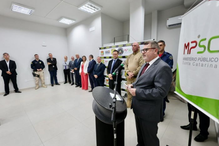 Ato oficial contou com a presença de autoridades de segurança pública - Foto: Divulgação O Ministério Público de Santa Catarina (MPSC) inaugurou na última segunda-feira, 04 de março, a nova sede do Grupo de Atuação Especial de Combate ao Crime Organizado (Gaeco) e do Grupo Especial Anticorrupção (Geac) de Criciúma.