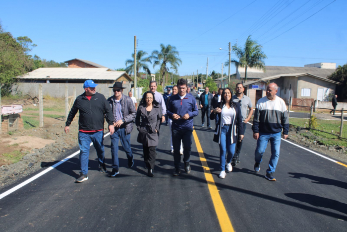 Outros dois bairros tiveram ruas revitalizadas - Foto: Tiago Silva O Governo de Criciúma entregou no último sábado, 26 de agosto, mais de R$ 7 milhões em obras de infraestrutura e mobilidade urbana. Nos bairros Demboski e Linha Batista, foram inauguradas a pavimentação asfáltica e a nova ponte da Rodovia Pedro Manoel Pereira.