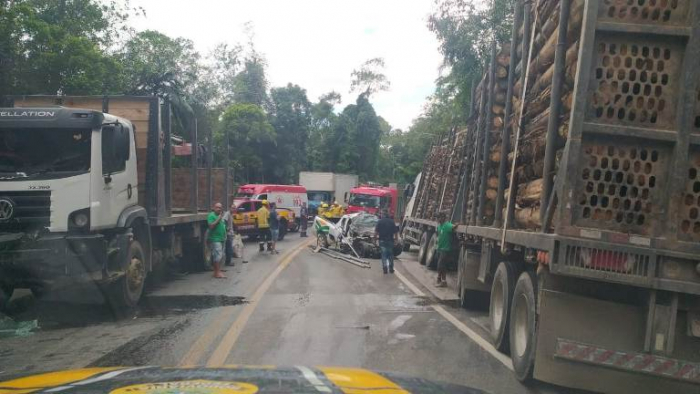 O acidente provocou o bloqueio total da rodovial federal no trecho de Águas Mornas. De acordo com a PRF, ainda não há mais informações confirmadas e nem previsão de liberação das pistas.