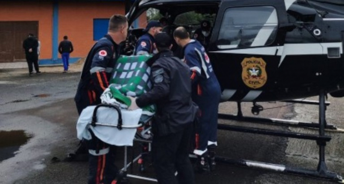 A aeronave da Polícia Civil, tripulada pelos policiais do Serviço Aeropolicial (Saer) e por profissionais da saúde do Samu foi acionada por volta das 10 horas para atender a vítima, que chegou a perder a consciência.