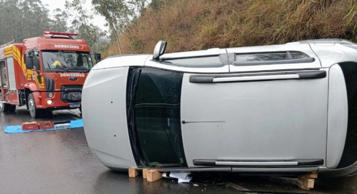 O motorista de 47 anos teria perdido o controle da direção - Foto: Divulgação Um motorista, de 47 anos, perdeu o controle da direção e capotou o veículo na SC-390, em Lauro Müller.