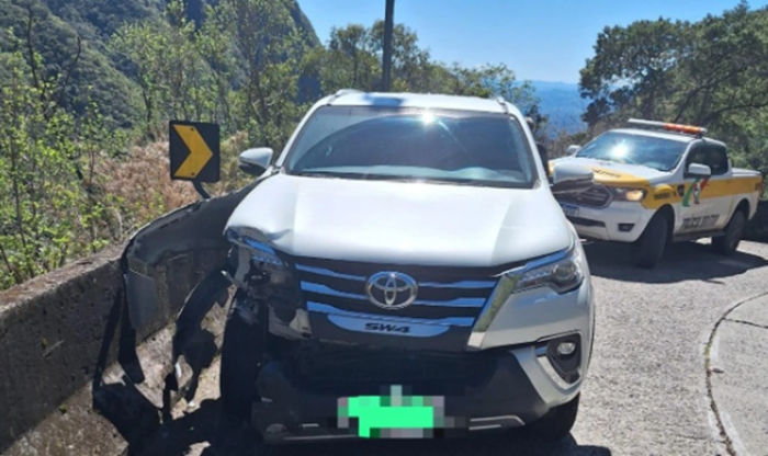Vítima seguia no sentido Lauro Müller a Bom Jardim da Serra - Foto: Divulgação Um motorista, de 72 anos, perdeu o controle da direção e colidiu uma caminhonete Toyota Hilux-SW4 contra a mureta de proteção na Serra do Rio do Rastro (SC-390), no Km 408.350, em Lauro Müller.