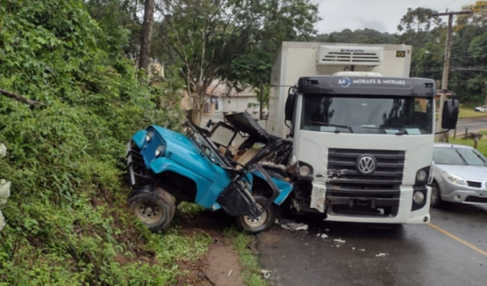 Ele conduzia um veículo Jeep quando bateu de frente contra um caminhão na Estrada Geral do Bairro Pirago.