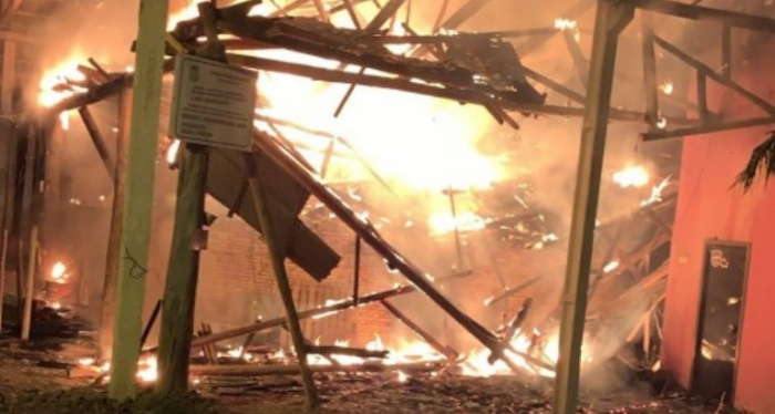 Foram utilizados cerca de 33 mil litros de água - Foto: Divulgação Um incêndio de grandes proporções atingiu uma olaria às margens da BR-101, no Bairro Morro Grande, em Sangão, na noite dessa sexta-feira, 22 de março.
