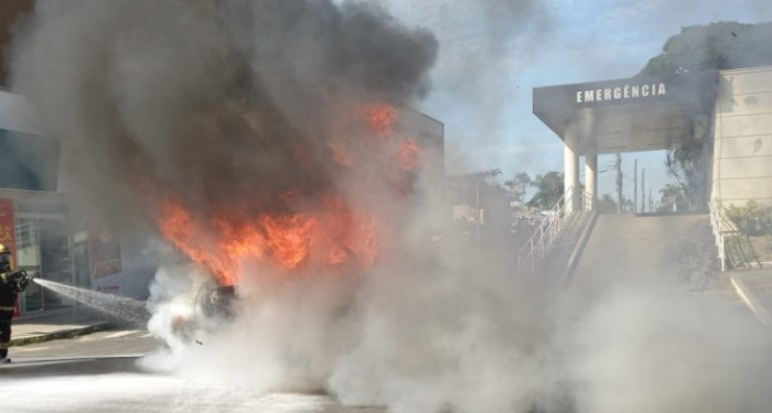 Segundo a guarnição, quando os bombeiros chegaram ao local, o incêndio já estava em fase de desenvolvimento completo, atingindo todo o compartimento do motor e interior do veículo.