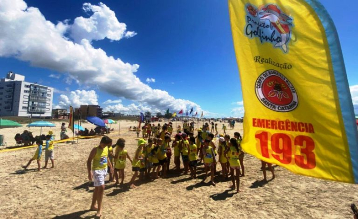 O programa é gratuito e destinado a crianças de 7 a 11 anos de idade - Foto: Divulgação Com o aumento das temperaturas, cresce também o número de turistas que frequentam o litoral. Pensando nisso, o Corpo de Bombeiros Militar de Santa Catarina (CBMSC) desenvolve o Programa Golfinho nas praias do estado.