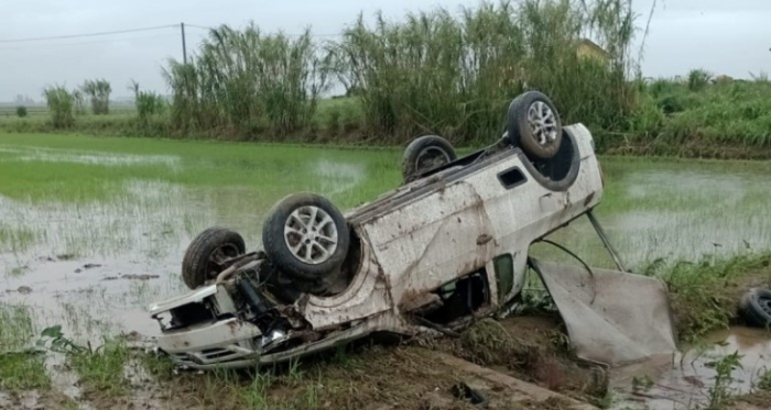 Os bombeiros encontraram o veículo capotado no meio de uma plantação de arroz