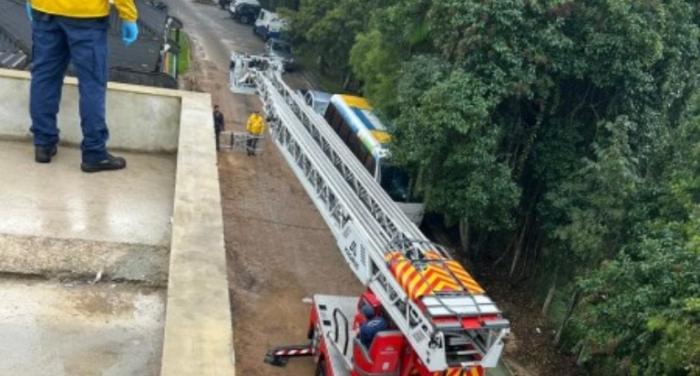 Segundo o Corpo de Bombeiros Militar, por conta da altura da edificação e do difícil acesso ao local, bem como a necessidade de imobilizar o trabalhador, a equipe optou por retirá-lo em maca rígida com o uso da escada Magirus.