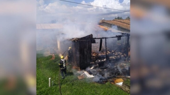 As chamas destruíram completamente o imóvel de madeira - Foto: Divulgação Um homem de 37 anos ateou fogo na casa da própria mãe em Nova Veneza na última terça-feira, 18 de março.