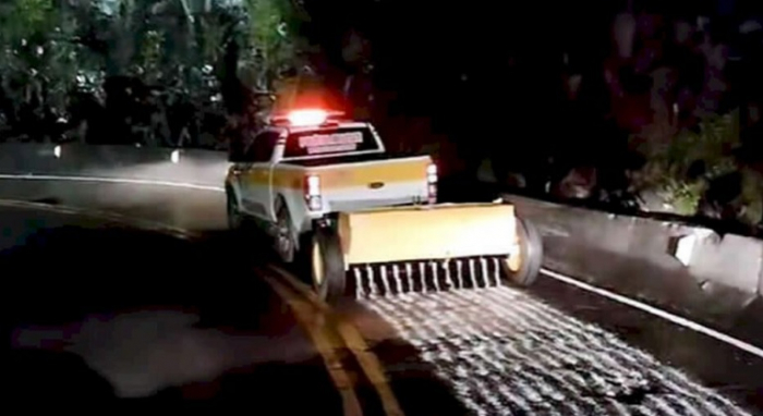 A substância foi espalhada pela Polícia Rodoviária Federal (PMRv) após o registro de temperaturas negativas