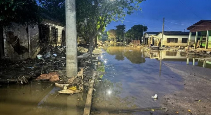 Ruas de Eldorado do Sul voltam a alagar em 24/06/2024 - Foto: Mary Silva/RBS TV Moradores de Eldorado do Sul, na Região Metropolitana de Porto Alegre, voltaram a sair de casa entre a noite do último domingo, 23 de junho, e a manhã desta segunda-feira, 24 de junho, após ruas dos bairros Sans Souci, Itaí e Sol Nascente inundarem.