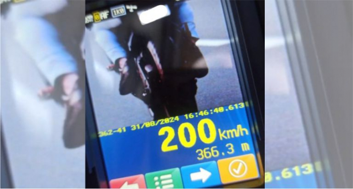 Multa pode chegar a R$ 1.500, e perda do direito de dirigir - Foto: Divulgação/PMRv Na tarde do último sábado, 31 de agosto, um motociclista foi flagrado conduzindo uma moto a 200 quilômetros por hora (km/h). Ele cometeu a grave imprudência na Via Rápida, em Criciúma.