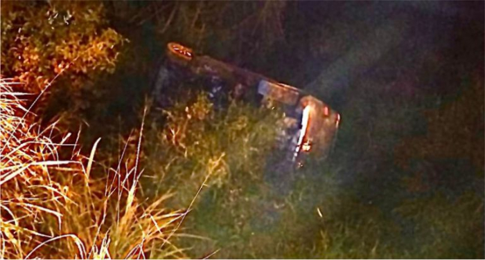 Segundo a Polícia Militar, o motorista, de 58 anos, seguia pela estrada geral do Bairro São José e perdeu o controle do carro, tombando na área alagada.