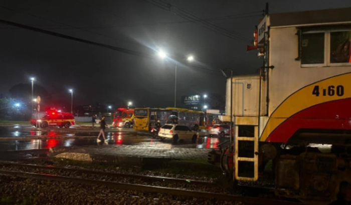 O acidente ocorreu na noite da última quinta, 04 - Foto: Divulgação/CBMSC A imprudência de um motorista de ônibus de transporte coletivo, segundo a Polícia Militar, provocou uma batida contra um trem na noite da última quinta-feira, 04 de setembro, na Avenida Centenário, no Bairro Pinheirinho, em Criciúma.