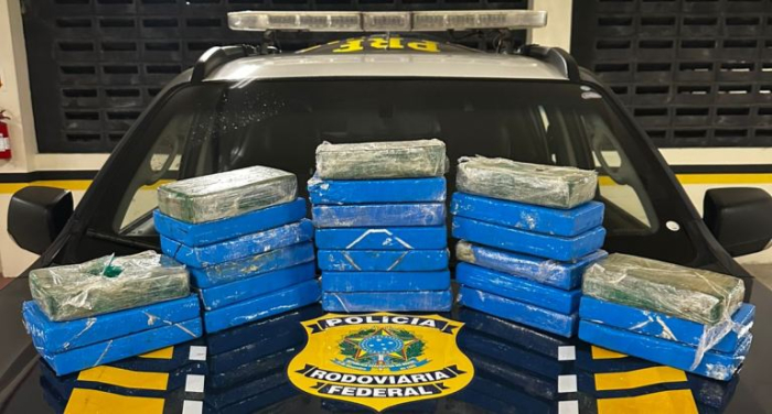 Após a interceptação, durante a vistoria no porta-malas do veículo, os agentes encontraram 20 tabletes de cloridrato de cocaína e 5 tabletes de pasta base de cocaína, totalizando 25 quilos da droga.